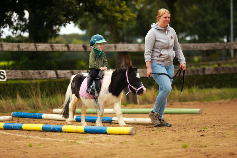 Pony leiden: Hierbij wordt gekeken hoe je de pony aan de hand kunt leiden. Tijdens deze proef ga je over balkjes.